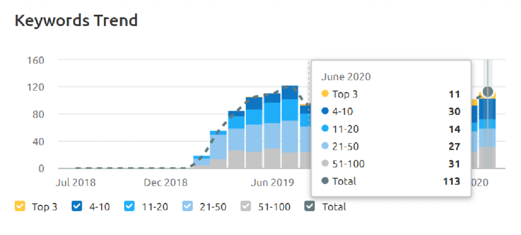 The site also ranks in the top 3 positions on Google for key commercial search terms, up from 0 keywords in the top 3 search results in June 2019: