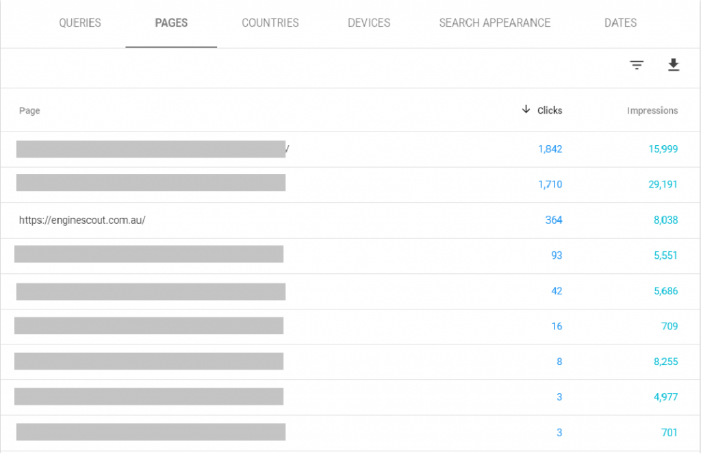 GSC also shows you which pages bring the most organic traffic from Google.