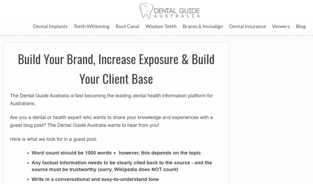Expert tip: You should write guest posts yourself, don’t outsource this to another writer because you’re the expert and will have more knowledge than generic writers when it comes to Dental related topics.