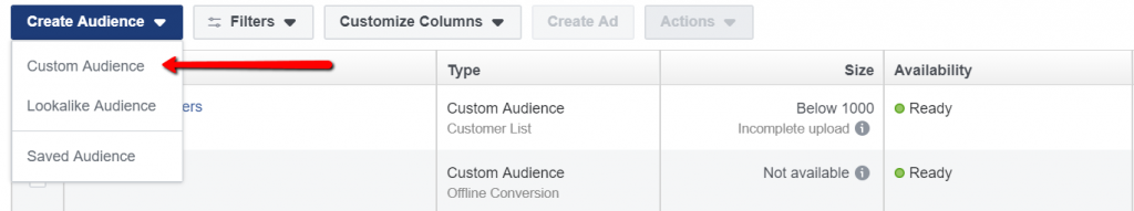Step 1: Log into your Facebook Ads Manager and select Audiences