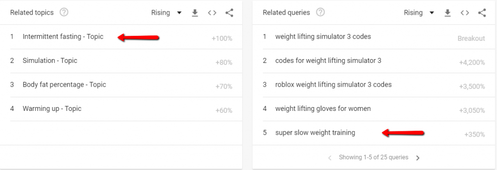 For example, the image below shows your related topics to the search term ‘weightlifting’.
