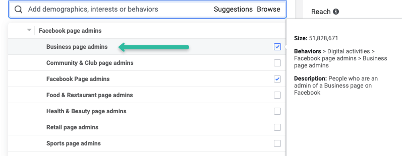 For example: If you want to target Business owners, you can target people who manage Facebook business pages using behavioural targeting.