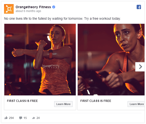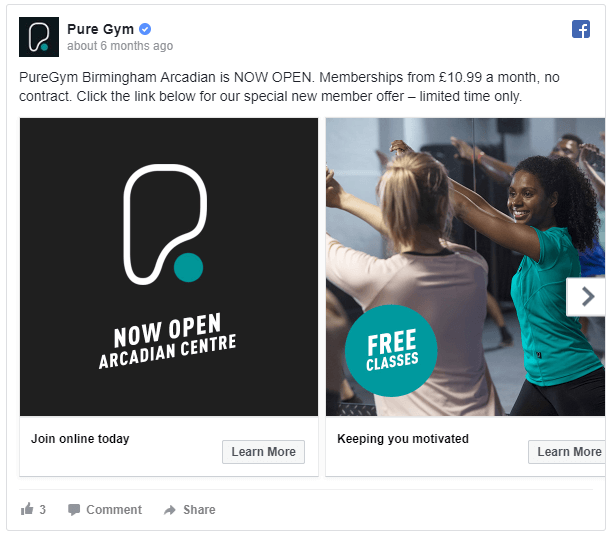 The ad on the right has social proof with likes and comments so when buyers see it they stop and think: “Wait, look how many people like this gym! I’m going to check them out and see what all the fuss is about.”