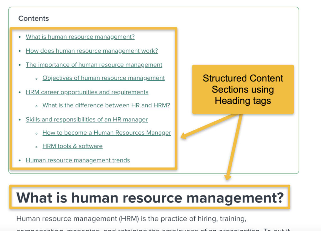 Content that has been prepared in a structured way, with a H1 for an overarching theme, H2 for subheadings, and H3 onward for subsections, will be easily read by users, and contributes to a positive user experience.