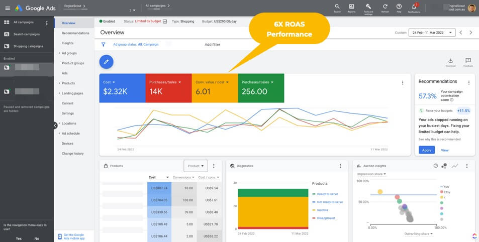 At Engine Scout, we measure success against sales performance with a focus on protecting your profit margins. In other words, if we’re not turning a profit from your ad spend then we’re not doing our job. Our Google Ads Management service is all about getting you results and we work on accounts across Australia.
